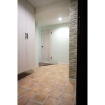 以前の玄関ホールだった部分も玄関の土間として広げました。大きなロッカー型の玄関収納を設置し、そのほかオープンのコートクロークや棚も設置しました。玄関、廊下の照明はすべて人感センサーで夜でもスイッチを探す必要がありません。