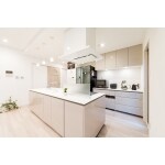 キッチンはアイランドキッチンにすることで、左右どちらからも行き来ができ、使いやすいキッチンとなりました。また、家族のコミュニケーションもとれるような配置となりました。