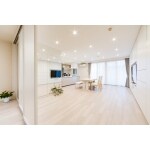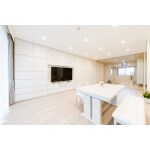 間取りを変更し、玄関は洋室をなくし広々とした空間をご提案。LDKは間仕切りで区切り、扉を片面に寄せることで大空間となりました。