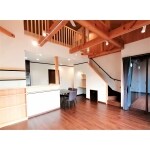 部分共有型の2世帯ということもあって空間的には十分なスペースがありましたので、耐震性の観点からも2階部分を撤去するプランを提案。また、屋根を葺き替えることによって出来た小屋裏は、ロフトとして利用すること提案しました。LDKは、勾配天井とロフトによって開放的な空間としました。また、サンルームには十分な日照が得られるよう、屋根の一部はガラス仕様としました。