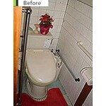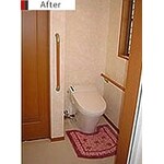 【工事内容】 ・浴室、トイレ、洗面入替え(下水工事含む) (間取り変更含む) ・玄関ドア、門扉入替え、ブロック塀塗装、内装クロス ≪仕上げ≫ ・浴室(TOTO/JVV1317+大阪ガスカワック) ・トイレ(INAX/サティス) ・洗面(INAX/ソフラ) ・玄関ドア(トステム/フォルマEX断熱サッシ) ・他 【コメント】 一人暮らしのおばあ様の為に息子様からのご依頼での工事でした。 トイレはスペース的には十分ではありませんでしたが、その為脱衣場と浴室が狭く、また洗面器が廊下の片隅にあり不便でした。 思いきって間取りを変更し、足を伸ばして入れる浴室を設置。また、トイレと洗面はセパレートとせず、一体化させて広いスペースを確保しました。 これにより、普段から余裕を持って使用できるのと、将来的に介護が必要になっても十分なスペースとなりました。