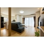 対面式のレイアウトに変更。 LDK一体となった空間に向かっているため、 寂しくありません。 テレビも家族と一緒に楽しめるレイアウトです。
