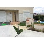 建物のイメージに合わせた南欧風オープン外構をご要望でした。 さらに門柱はおしゃれなデザインにしたいとの事でした。 機能面では駐車場常駐で2台、ゲスト用1台が必要。 またお子様がまだ小さいので一緒に遊べるガーデンスペースもご希望でした。
