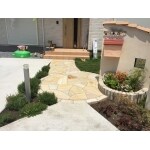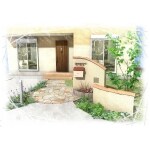 南向き玄関の住宅は、アプローチ、お庭、駐車スぺースとすべてが南側になってしまうことから、植栽も含め全体的にバランスよく配置し、統一感を持たせるよう工夫しました。 門柱はご自宅の外観に合わせた塗り壁仕上げとし、洋風瓦を笠木として使用しました。 3台分の駐車場でスペースが取られてしまう為、ゲスト用の駐車スペースはあえて縦列駐車でご提案し、お庭を出来るだけ広くとれるようレイアウトしました。