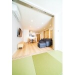 LDKの続きに畳コーナーを設けた設計。畳コーナーとLDKとの間仕切りは全開できるトールサイズの引き戸を採用しているので、開放感たっぷり。日当たりも風通しもとってもいい。天井が高いのも弊社が建てる家の特長。