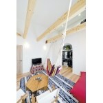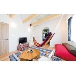 将来は主寝室にしようと考えて造られた2階の洋室。今はセカンドリビングと子どもたちのプレイルームとして活用。勾配天井になっているので、そこを活かしてロフトにするなど、遊び心たっぷりの工夫は、弊社の自社大工からの提案。