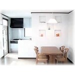 壁材の色と、照明を変える事により、部屋全体を明るくしました。 造り付けの食器棚の厚みを利用して、飾りスペースを作りました。