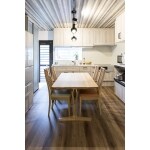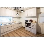 老朽化していた給排水管の更新に合わせて、キッチンの取替をご提案させて頂きました。既存の空間に馴染むキッチンをお施主様と様々検討し、質感のある明るい木目調キッチンにしました。同じ扉材で家電収納棚も作り、動線も快適になりました。隣のリビングと一体感が出るよう、天井クロスとフローリングを揃えました。