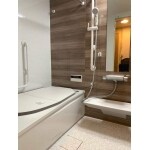 T社のマンションリモデルWY Kシリーズを設置いたしました。 浴槽横と正面に手すりを取り付けることで、高齢者の方でも立ち上がり・移動がラクになっています。また、洗い場への段差も低くなったことで躓く危険性も低くなったかと思います。