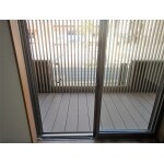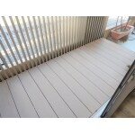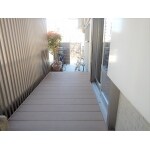 1FのデッキにLIXILレストステージを設置し、アルミのスリット縦格子を取付けました。