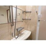 LIXIL リノビオVシリーズ1218サイズにお取替え。 壁パネルは全面「組石ベージュ」というお色です。浴槽やカウンターもベージュで統一しました。