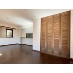リビング収納建具はウッドワンのピノアースシリーズです。天井いっぱいまで高さのある建具はルーバータイプで、リビングにいいアクセントを加えています。空気が循環しやすいので収納内部の湿気もこもりにくく、カビやダニなどの発生も抑える効果があります。