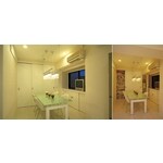 Y様は築後8年のマンションにお住まいです。奥様が2人の娘様達と一緒に料理を楽しめる広いキッチン、使い勝手の良い収納、家族で過ごすスペースの充実をご希望でした。 【シンプル】 広いDKとリビング(ホームシアター)主体の間取りに変更。オーダーメイドした、取っ手の無いワンプッシュ式の収納を駆使して、スッキリ空間に。 【モダン】 玄関には白い大理石、室内の壁面も白を基調としたものに統一して、モダンな高級感を演出。 【快 適】 リビングと廊下に床暖房を採用。 「2人の娘と料理を楽しみたい」とおっしゃる奥様のご要望に応えて、リビングとDKはあえて別々にレイアウト。さらに、奥様と娘様達が並ばれても十分ゆとりがある、3000×2100のワイドサイズなL型キッチンを採用して、11帖のDKを「とことん料理を楽しむスペース」にしました。施工上ネックとなった梁の下も炊飯器置き場に活用するなど、細かい所まで工夫を凝らしました。余談ですが、キッチンの天板がエレベーターに入らず、12階の現場まで6人がかりで非常階段から搬入する事態に。そんなハプニングも、今となっては笑い話です。