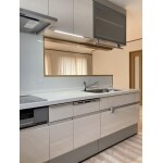 | その他採用機器・設備 | LIXIL シエラ I型 L=2550 スライドストッカータイプ 扉:グループ3 ワークトップ:人造大理石カウンター シンク:ステンレス 水栓:シングルレバー混合水栓 加熱機器:2口IH+ラジエント(無水両面焼グリル) レンジフード:汚れんフード CLSタイプ 食洗機、オートダウンウォール(食器乾燥庫タイプ) |