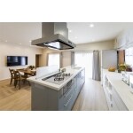 昭和の時代に増築された部分は新しく過ごしやすい空間へリノベーション。キッチンは対面式で広々としたLDKスペースをご希望だったので、キッチンの位置は西側から東へ移動し、LDKから収納、中学生のお嬢様の部屋に繋がるようにしました。奥様セレクトのブルーグレーのキッチンはが映えるよう明るく爽やかにコーディネート。お母さまと奥様とお二人でキッチンに立っても動きやすく配膳もしやすいようアイランド型で家族みんなが集まる空間へ。