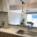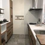 元の位置からの移動の少ない間取りにすることで施工費を抑えることができます。配管を通した壁を利用して、調味料などを置けるニッチを設けました。