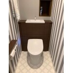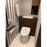 T社のレストパルI型を設置いたしました。 給排水管をキャビネットで隠すことにより、スッキリとしたトイレに仕上がっています。 またキャビネットカラー・内装も相まって、とてもお洒落な空間になっています。