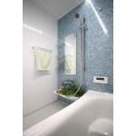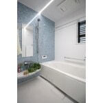 爽やかな色合いのブルー系アクセントパネルで、さっぱりとした印象のバスルームです!