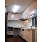 そもそもは「キッチンを交換したい!」と言う奥様のご希望から、リフォーム計画がスタートしました。計画が進むにつれ、キッチンに加え、物であふれ雑然とした洗面脱衣室、浴室の設備交換、ご家族がゆったりくつろげるダイニングスペースの確保と、次々にリフォーム希望箇所が増えていきました。 充分な収納とダイニングスペース確保の為、増築も視野に入れられていたお客様でしたが、もともと充分な広さのあるお宅です。「狭い→広げる」と言う安易な発想は止めて、レイアウトの変更で無駄なスペースをなくすと言う方向でプランニングしていきました。 L型対面キッチンをI型+収納キャビネットにする事で、キッチンから洗面脱衣室、浴室へと奥様の家事に適した動線を確保したまま、お客様のご希望通りのダイニングスペースが生まれました。デッドスペースとなりつつあった、LDK北東部分のコーナー出窓も息を吹き返し、貴重な明かり取りの役目も果たすようになりました。L字型の洗面脱衣室は、浴室を1.5倍の広さにすることでコンパクトにはなりましたが、収納が充実した洗面化粧台を採用して、スペースを有効に使えるようになりました。