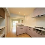 ・暗さ解消の為キッチン位置を南向き対面式にし、明るいキッチンとしました ・対面カウンターの奥行を使いスパイスラックをしつらえました