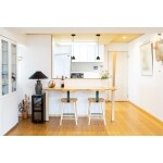壁付けキッチンの向きを90度変え、リビングと対面するよう変えました。家電カウンターも作り、家事動線も改善しました。また、対面カウンターを作って、お料理をしながらでも会話が出来るようにしました。食卓になったり、お酒を楽しんだり、色々なシーンで活躍しています。コンロ周辺だけでなく、出窓のカウンターにもキッチンパネルで仕上げました。火気に強く掃除もしやすくしました。