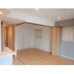 リビングと隣接する洋室の間仕切り壁を取外しスライディングウォールに変更しました。扉を閉めれば完全な洋室になり、開閉でリビングの広さを調整できるようにして、さまざまな使い方に応用できるスペースとして仕上げました。