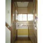 脱衣室がないために、キッチンで脱衣をしていたため、冬は寒い思いをして、お風呂に入られていました。ご夫婦も高齢になられて、今後は安全に、そして快適に、お風呂へ入りたいと思われたのが、リフォームのです。 これまで、脱衣室が無く、不便に感じられていた点を改善の最大のポイントと考え、浴室・トイレ・洗面室のレイアウトを大幅に変更し、脱衣室兼洗面室を確保することをご提案しました。 また安全性の確保のため、ユニットバスを採用して、バリアフリー仕様にしました。 水廻りのレイアウトを大幅に変更することで、これまでなかった脱衣室を確保することができました。トイレ・洗面室・浴室の各必要手法を確保しながら間仕切壁の位置を決めて、レイアウトを変更しました。施主様がご高齢のため、バリアフリー仕様は必要条件で、必要な場所には、手すりを設置するなど、安全性にも配慮したリフォームが完成しました。