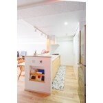 かわいらしい物も、カッコいい物も好きな奥様でしたので、各部屋毎にイメージを変えていくことをご提案しました。 また、天然素材がお好きでしたのでLDKを漆喰塗りを取り入れ、対面式の無垢のキッチンでカフェ風のカウンターに仕上げました。 お店のような洗面化粧台、トイレは絵を飾り、お風呂は男性陣の意見を取り入れてカッコいい感じに。