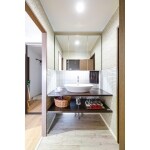 かわいらしい物も、カッコいい物も好きな奥様でしたので、各部屋毎にイメージを変えていくことをご提案しました。 また、天然素材がお好きでしたのでLDKを漆喰塗りを取り入れ、対面式の無垢のキッチンでカフェ風のカウンターに仕上げました。 お店のような洗面化粧台、トイレは絵を飾り、お風呂は男性陣の意見を取り入れてカッコいい感じに。