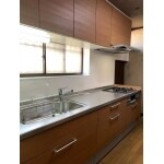 L社のシエラI型を設置いたしました。 キャビネットが引出しタイプになったことで、収納力がアップ。調理器具の取り出しもスムーズに行えます。