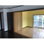 畳の部分をフローリングに変更して、フローリングの色と合う色の収納扉に交換しました。