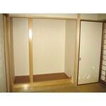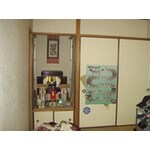 巾90cm、高さ160cmの大きなお仏壇をご購入されるとのことで、現在の仏間のスペースには全く入らないとのことでお悩みでした。 まず、ご購入されるお仏壇のサイズをもとに、仏間の間口を決定しました。残りのスペースは、既存の掛軸を掛けられるように床の間とし、さらに中段及び枕棚付の押入を設ける提案をさせていただきました。 奥様のご希望で、明るい雰囲気の仏間にされたいとのことでしたので、床の間、仏間には、明るい色調のクロスを選定し、床柱、床框はクリア塗装仕上げとし、綺麗な花柄の押入れ襖にしたことで、明るく華やかになりました。