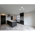 キッチンをペニンシュラ型にし、LDKを見渡せる向きに配置しました。 換気ダクトはパントリー内に納め、ダウンライトメインの照明計画にしたことで、すっきりとした印象となりました。