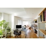 洋室を解体したことで仕切り壁もなくなり、お部屋全体が明るくなりました。梁や柱の凹凸を利用し、空間をゾーニング。奥様はキッチン、お子様はリビング、旦那様はワークスペースでそれぞれの時間を過ごす時も、お互いの気配を感じて、何気ない会話が増えたそうです。壁に下地材を入れ、棚を設置できるよう耐久性をプラスしました。テレビの配線も壁の中に収め、スッキリさせました。また、一部の壁は、塗り壁にしました。左官仕上げならではの温もり感があり、塗り壁の厚みを棚柱と揃え、出っ張りなく、すっきりとさせました。