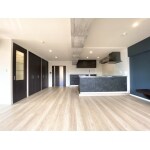 リフォーム後のリビングダイニングキッチン テレビ背面のアクセントクロスのカラーは、深めのカラーをお選びいただき、落ち着いた空間に仕上がっています。