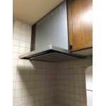 スッキリしていてお手入れしやすい、フラットスリムレンジフードをご提案をしました。 吊戸棚とレンジフードの位置が揃うように工事を行いました。