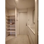 スライド収納と三面鏡裏の収納で収納力もアップ。 また廊下だけでなくLDKからも直接アクセスできる動線に変更しました。