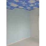 ・お子様のお部屋の為、天井は雲柄、壁はお好きなキャラクター&光るクロスをお選びいただきました。床、幅木、廻り縁、窓枠は白を基調としたため、とてもさわやかなお部屋になりました。