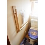 トイレにL字型の手すりを新設しました。 立ち上がった瞬間、よろけて転倒してしまうといった転倒や落下などの危険性が低くなり、足腰にかかる負担や不安が軽減できます。 水平型とI型が一緒になった、アルファベットのLのような形状の手すりです。立ち座りなど上下の動作を多く行うトイレや浴室に適しています。 ただし、手すりの位置が便座に近すぎると、重心移動が難しくなり、立ち上がりにくくなります。トイレに付ける場合は、ペーパーホルダーの位置も考慮しながら設置場所を決めることが大切です。