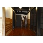 床材を落ち着いた色にし、欄間だった一枚板も加工してオブジェにとして再利用。以前にも増して高級感が感じられる廊下になりました。