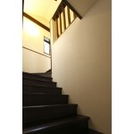 曲がり階段にすることで勾配も緩やかになり、上り下りがしやすい階段に。