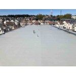既存の防水シート上に断熱用の平板が敷き詰められていました。これを撤去処分するのは費用も掛かりますので、通気型塩ビシートでの全面防水をご提案しました。