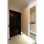 ドアのカラーと土間タイルも変えてイメージ一新したお洒落玄関