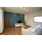1Fはご家族共有のリビング、2Fが若者世帯のリビングと、上下階ともに温水式床暖房を設置。 ちょうど寒くなる季節のお引越しで、ぬくぬくと優しい暖かさも感じられ、大変ご好評いただいております。 愛らしい猫ちゃんも、ちょっとヤンチャしたい時だってあるだろうと、腰壁には引掻き傷に強いパネル素材を採用しました。 お部屋のアクセントともなり、お気に入りポイントに。 今まであった廊下もなくし、洗面と洗濯を干せる場所も兼ねた部屋を確保。 ストック品もたくさん置けるように、オリジナルの棚も造作しました。