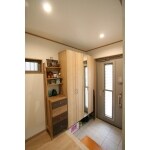 大き目のシューズクロークに通風タイプの玄関ドアをご提案し、すっきりとして、内装も明るくなりました。