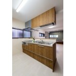 フラット対面タイプだと予算上むりでしたので、I型を採用することによりコストを大幅カット。余った予算でダウンウォールを取付。収納、機能性もアップしました。白が基調のため木柄を選び、キッチンの存在感が際立たせました。