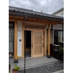 室内側の廊下をリフォームして玄関を広くする工事と、既存の玄関を解体し増築する工事の2つの方法をご提案しました。和風の引違い玄関ドアで電子錠が設置できるLIXILの花伝シリーズをご提案。
