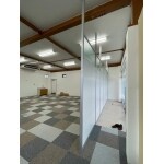 休憩室、会議室を店舗の中に作りたい 外の光が入りすぎないようにブラインドをつけてほしい。 入口をパーテーションで仕切りたい。