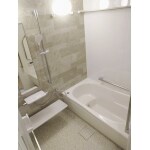 温かみのあるお風呂になりました。 手すりも浴槽の上に設置しました。