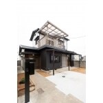 木々を伐採撤去し、新たにコンクリートを打設。簡易的ではありますが、駐車スペースができました。機能門柱も新たに設置。花壇を別スペースで設け、これから季節の花々が咲いていく予定です。